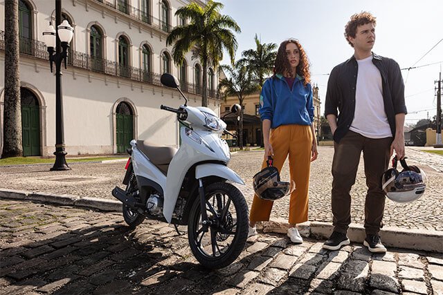 Ela é compacta, ágil e com câmbio semiautomático, o que facilita a pilotagem no dia a dia da cidade, sendo sua parceira pra onde você for.