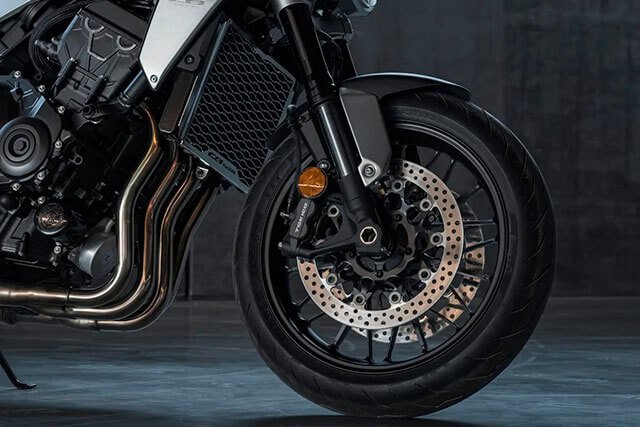 Rodas de liga leve e com sete raios duplos em preto brilhante, garfos dianteiros Showa Separate Function Front Fork Big Piston (SFF-BP) de 43 mm, suspensão traseira Single Showa com 5.2 polegadas de curso, e ainda com um chassis do tipo Diamond Frame e um novo sub-frame de alumínio.