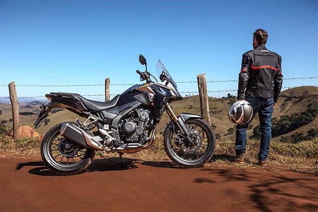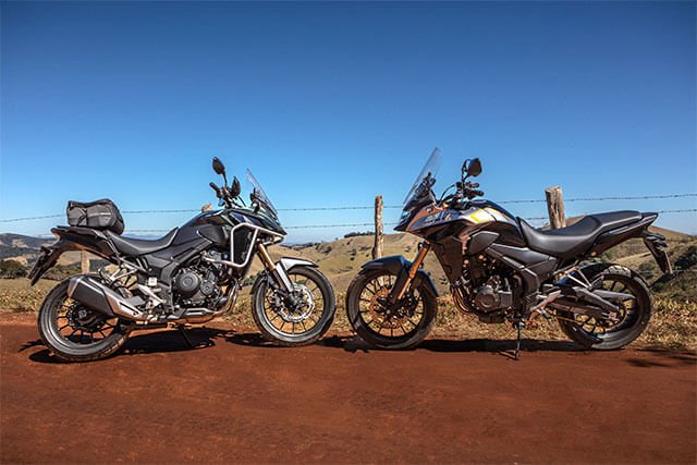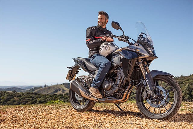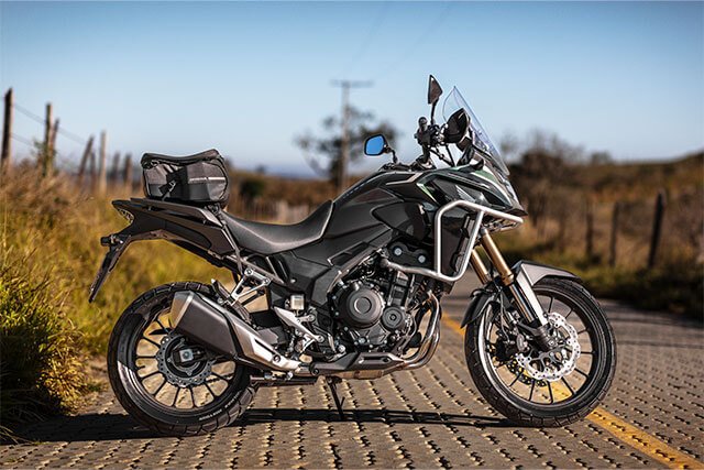 Com rodas de liga leve, as esportivas rodas da CB 500X calçam pneus de medidas 110/80-19 na dianteira e 160/60-17 na traseira.
